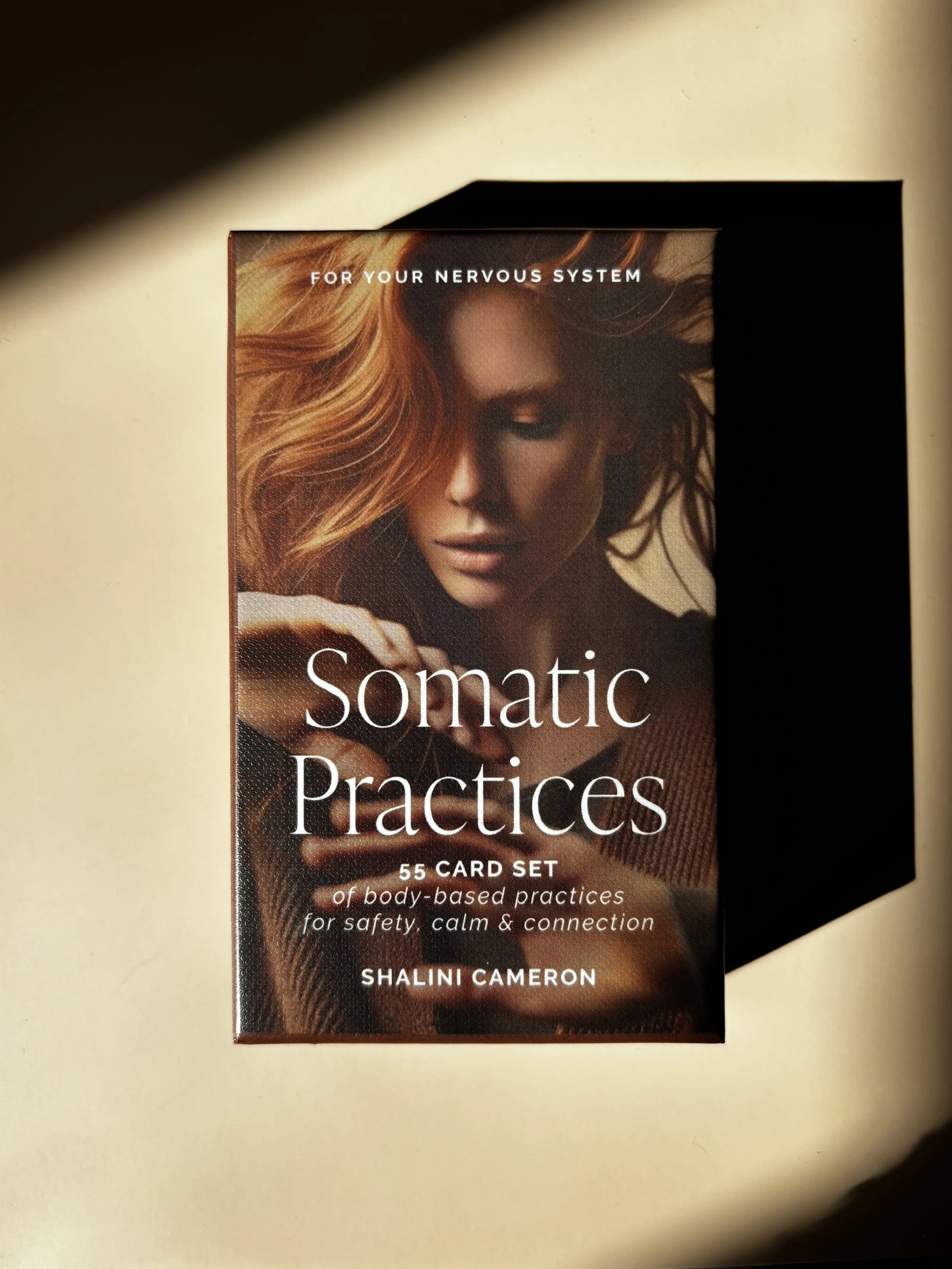 The deck includes practices that support grounding, containment, movement, vagal tone, and boundary awareness. These body-based techniques help regulate stress responses, support emotional stability, and guide the nervous system back toward safety.